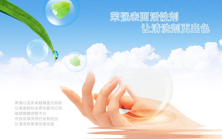 company philosophycompany philosophyDevelopment concept: we comply with the development of the new century opportunities, adhere to the "innovation, integrity, integrity, combination, share success, ecological environmental protection, high quality, global development" enterprise development of faith, to create a rapid growth and innovation oriented global chemical industry leader in the field of surfactant. Quality concept: rong qiang adheres to the core value concept of "international quality, international brand, independent innovation", and provides excellent quality of value, ecology, environmental protection, health and safety for the long-term development of every global strategic partner. Brand concept: "rongqiang" will uphold the "all for you" high quality brand concept, and the global cleaning industry elite enterprises hand in hand, "zhizhi" the world's outstanding cleaning agent surfactant brand! Service concept: we take "touching every customer with love" as the highest and only customer service principle, to provide professional, innovative, global, emotional, pre-sale, sale, after-sales system quality service for every rongqiang customer. |